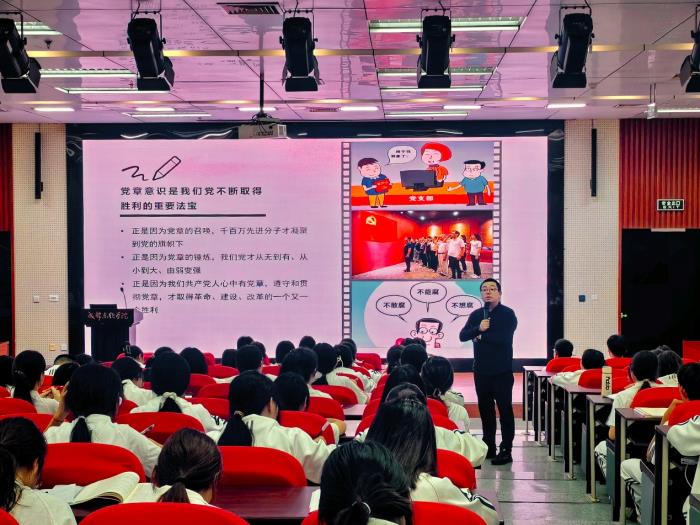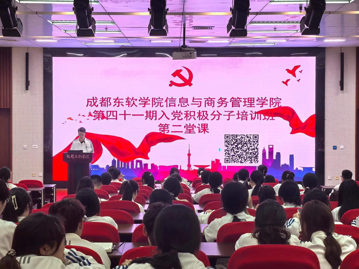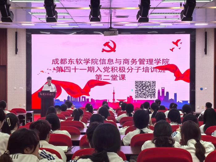 为进一步夯实入党积极分子与青年学员的思想理论基础,引导其深刻领悟党的创新理论精髓,信息与商务管理学院分党校于2025年10月10日晚7点在A3-104举行第四十一期入党积极分子培训班第二堂课。本次课程以“对照党章,寻找差距”为主题,学院党委书记、分党校校长罗玺同志担任主讲,全体党校学员参与学习。