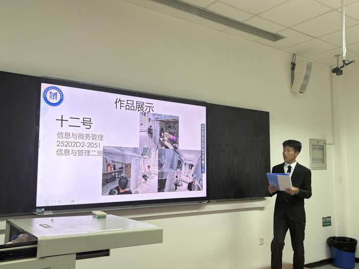 比赛现场,选手们通过大屏幕,精彩呈现了各自的寝室作品,从整洁的内务布局到充满创意的装饰设计,从温馨的日常点滴到趣味的互动瞬间,每一个细节都阐述了“文明寝室”的丰富内涵,呈现了信息与商务管理学院青年学子的优良作风。评委们认真品鉴,从作品创意、内容呈现等多方面进行专业打分。现场观众也沉浸其中,感受着各寝室的独特魅力之中。