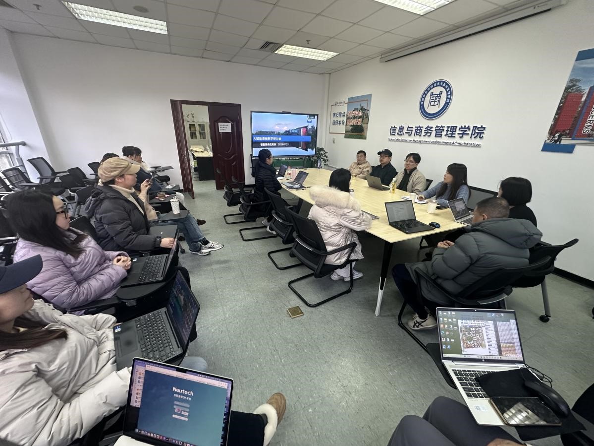 近日,智能商务应用系组织全体教师召开AI赋能教学课程建设研讨会,旨在推动人工智能技术与教学工作深度融合,全面提升教师数智化教学能力。会议由系主任杨浩磊主持,系部全体教师参会。
