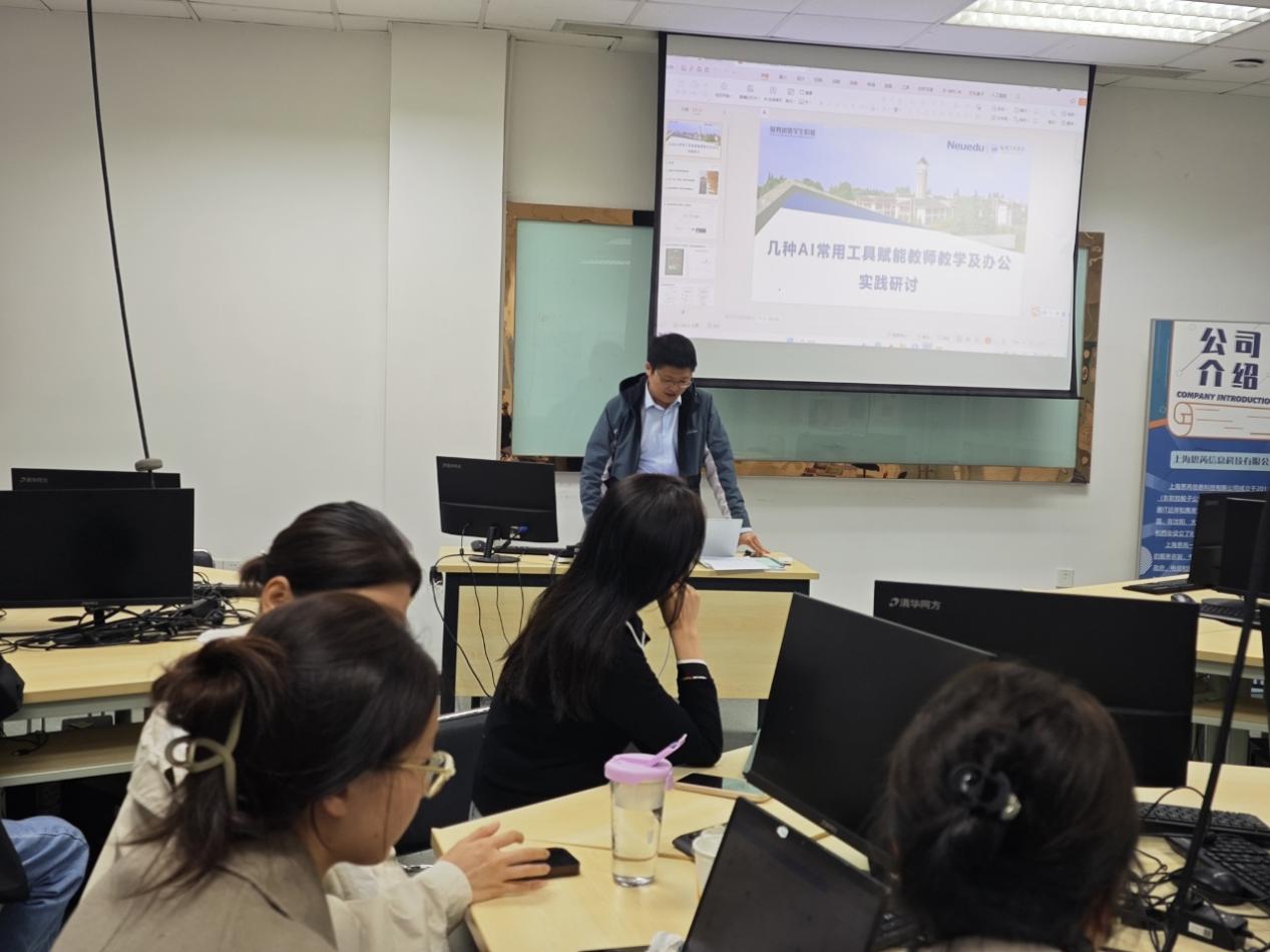 在研讨会中,巩正阳老师针对秘塔AI参与课程微课打造进行了详细的讲解,包含文档的处理与视频的结合,通过AI工具的深度思考与PPT内容的结合实现微课的创造,为老师实现混合式课改提供了一定的思路。并在会议后面就AI发展进行了教学转型的思考,并和老师们展开了热烈讨论。